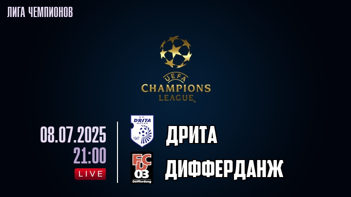8 июля 2025 года, мы предлагали вам прогноз футбольного матча между футбольным клубом Дрита и футбольным клубом Дифферданж, проходящего в рамках Лиги Чемпионов.