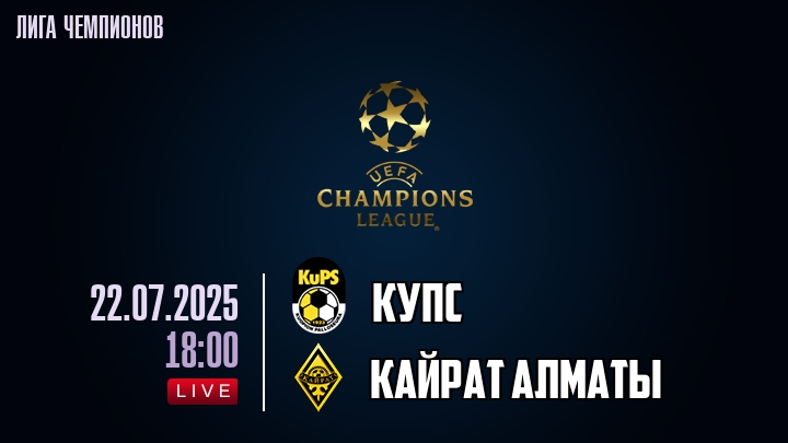 22 июля 2025 года, мы предлагали вам прогноз футбольного матча между футбольным клубом КуПС и футбольным клубом Кайрат Алматы, проходящего в рамках Лиги Чемпионов.