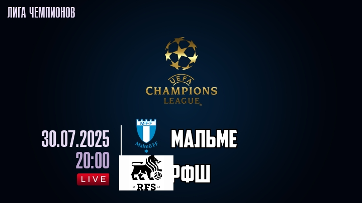 30 июля 2025 года, мы предлагали вам прогноз футбольного матча между футбольным клубом Мальме и футбольным клубом РФШ, проходящего в рамках Лиги Чемпионов.
