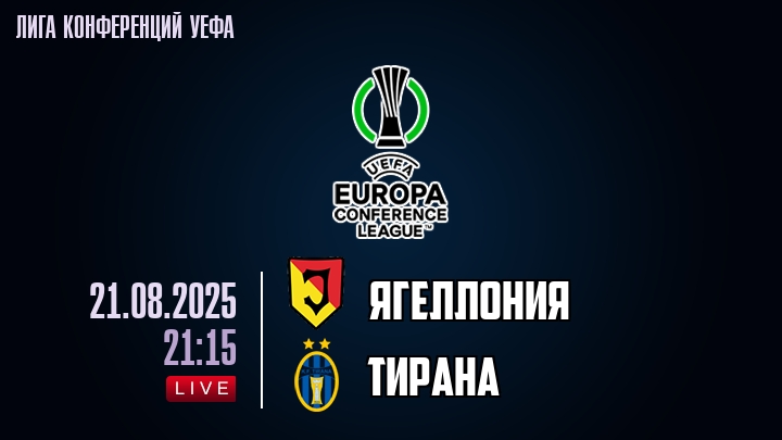 21 августа 2025 года, мы предлагали вам прогноз футбольного матча между футбольным клубом Ягеллония и футбольным клубом Тирана, проходящего в рамках Лиги конференций УЕФА.