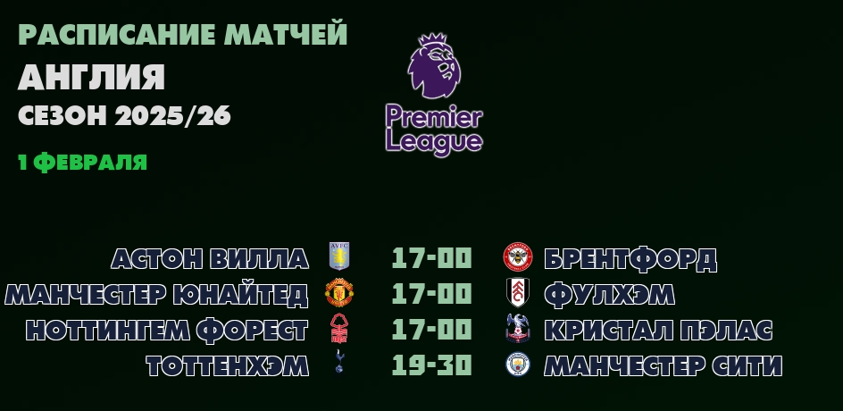 2 февраля, 23:00 Англия - Премьер-лига
