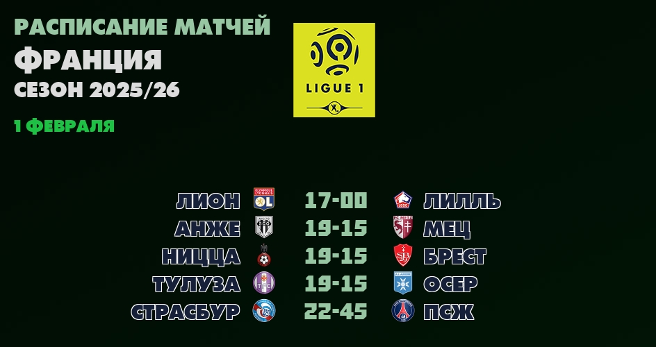 | Календарь матчей Лиги 1 чемпионата Франция