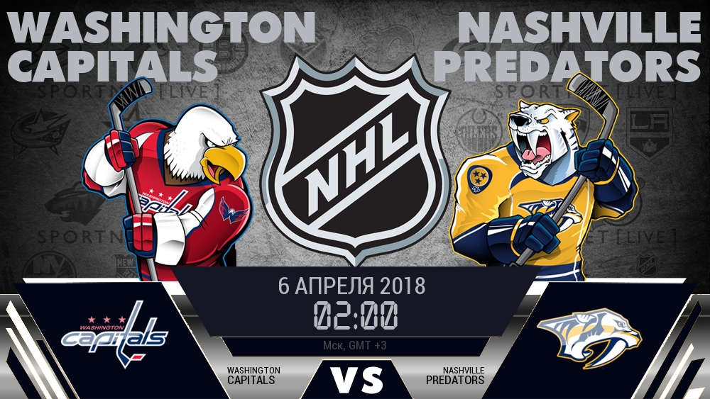 В турнирной таблице чемпионата NHL Вашингтон Кэпиталз занимает 5-е место, а Нэшвилл Предаторз занимает 14-е место .