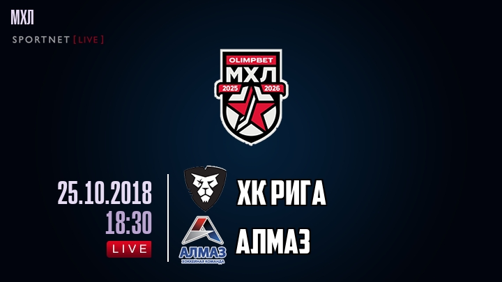 25 октября 2018 года, состоялась онлайн трансляция хоккейного матча между хоккейным клубом ХК Рига и хоккейным клубом Алмаз, проходящего в рамках чемпионата МХЛ.