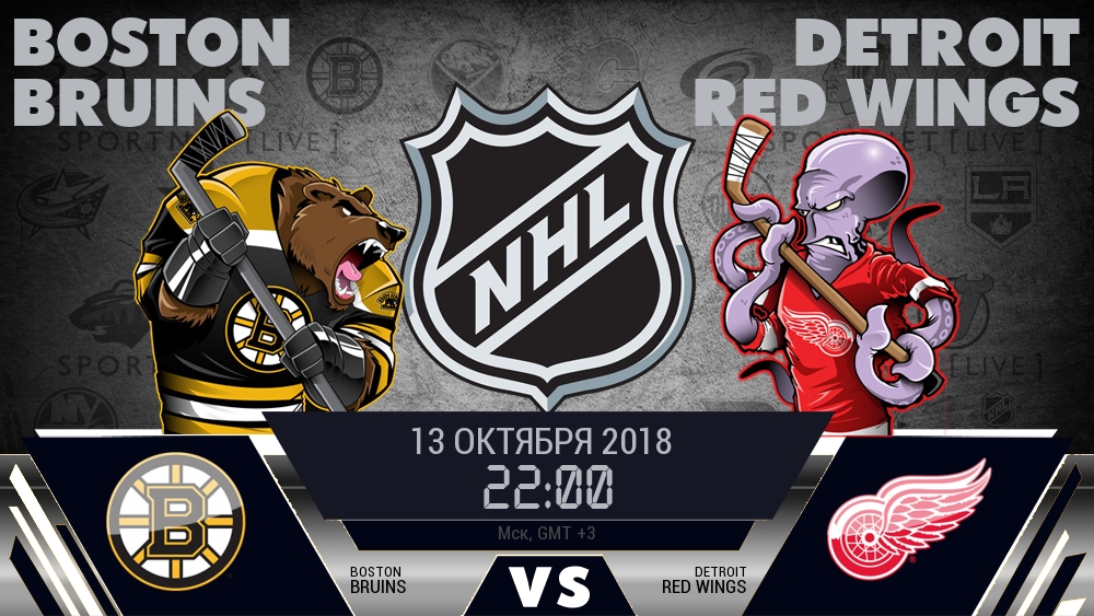 13 октября 2018 года, мы предлагаем посмотреть онлайн трансляцию хоккейного матча между хоккейным клубом Бостон Брюинз и хоккейным клубом Детройт Ред Уингз, проходящего в рамках чемпионата NHL.