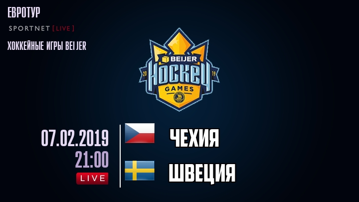 7 февраля 2019 года, состоялась онлайн трансляция хоккейного матча между сборной Чехии и сборной Швеции, проходящего в рамках Евротура.