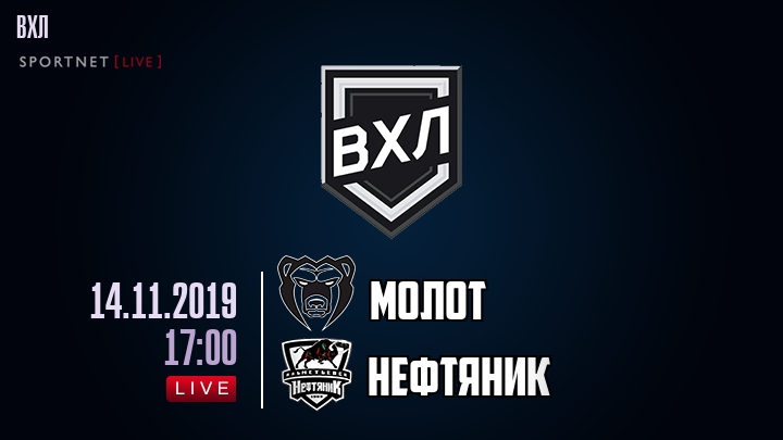 14 ноября 2019 года, состоялась онлайн трансляция хоккейного матча между хоккейным клубом Молот и хоккейным клубом Нефтяник, проходящего в рамках чемпионата ВХЛ.