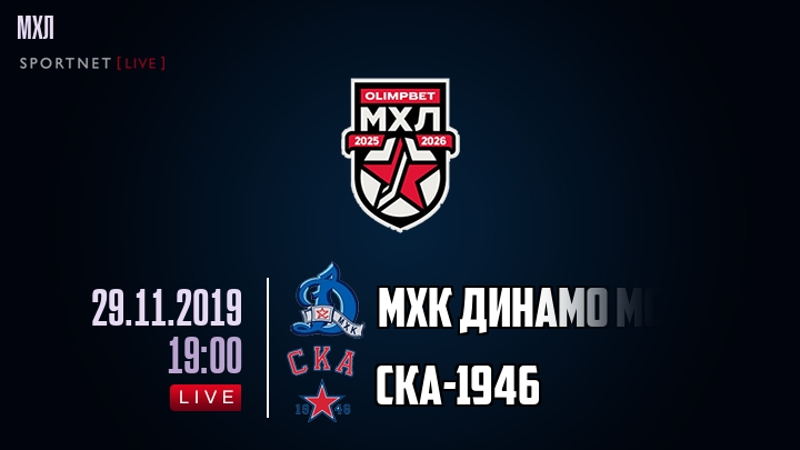 29 ноября 2019 года, состоялась онлайн трансляция хоккейного матча между хоккейным клубом МХК Динамо Мск и хоккейным клубом СКА-, проходящего в рамках чемпионата МХЛ.