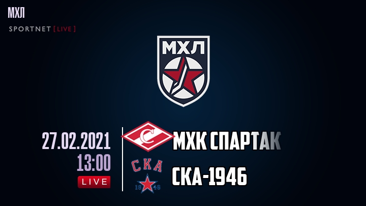 27 февраля 2021 года, состоялась онлайн трансляция хоккейного матча между хоккейным клубом МХК Спартак и хоккейным клубом СКА-, проходящего в рамках чемпионата МХЛ.