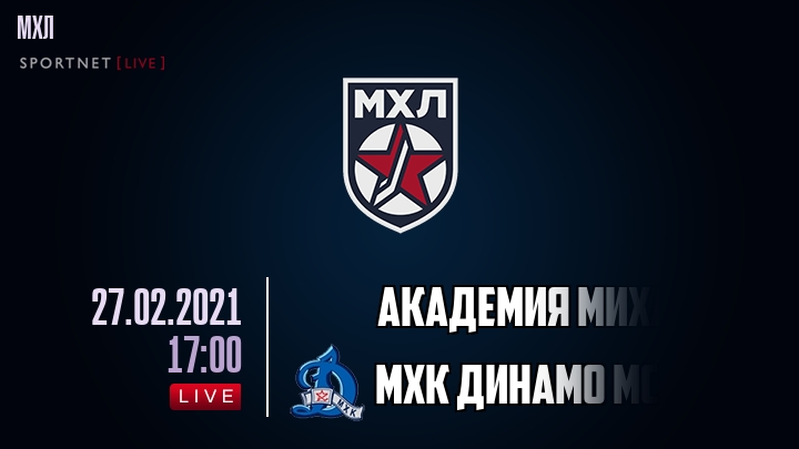 27 февраля 2021 года, состоялась онлайн трансляция хоккейного матча между хоккейным клубом Академия Михайлова и хоккейным клубом МХК Динамо Мск, проходящего в рамках чемпионата МХЛ.
