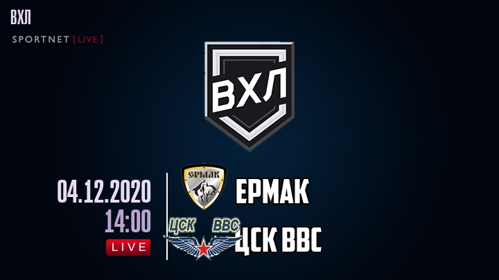 4 декабря 2020 года, состоялась онлайн трансляция хоккейного матча между хоккейным клубом Ермак и хоккейным клубом ЦСК ВВС, проходящего в рамках чемпионата ВХЛ.