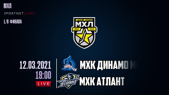 12 марта 2021 года, состоялась онлайн трансляция хоккейного матча между хоккейным клубом МХК Динамо Мск и хоккейным клубом МХК Атлант, проходящего в рамках чемпионата МХЛ.