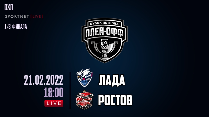 21 февраля 2022 года, состоялась онлайн трансляция хоккейного матча между хоккейным клубом Лада и хоккейным клубом Ростов, проходящего в рамках чемпионата ВХЛ.