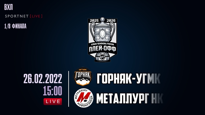 26 февраля 2022 года, состоялась онлайн трансляция хоккейного матча между хоккейным клубом Горняк-УГМК и хоккейным клубом Металлург Нк, проходящего в рамках Серии 1/4 финала ПЛЕЙ-ОФФ чемпионата ВХЛ.