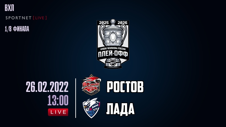 26 февраля 2022 года, состоялась онлайн трансляция хоккейного матча между хоккейным клубом Ростов и хоккейным клубом Лада, проходящего в рамках чемпионата ВХЛ.