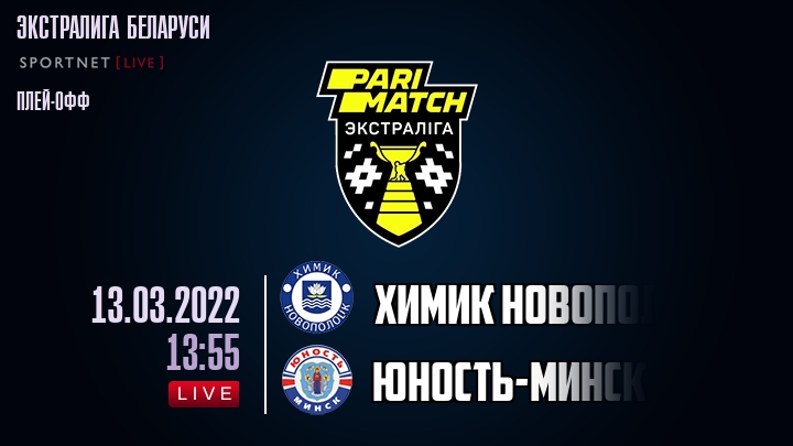 13 марта 2022 года, состоялась онлайн трансляция хоккейного матча между хоккейным клубом Химик Новополоцк и хоккейным клубом Юность-Минск, проходящего в рамках Экстралиги Беларуси.