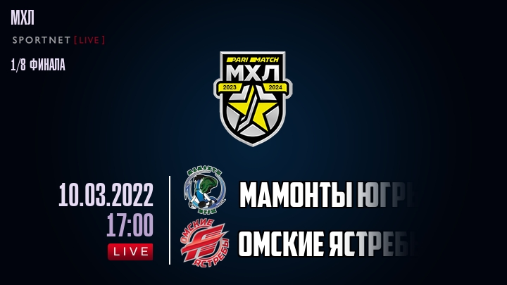 10 марта 2022 года, состоялась онлайн трансляция хоккейного матча между хоккейным клубом Мамонты Югры и хоккейным клубом Омские Ястребы, проходящего в рамках чемпионата МХЛ.