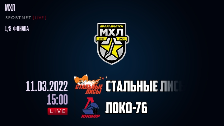 11 марта 2022 года, состоялась онлайн трансляция хоккейного матча между хоккейным клубом Стальные Лисы и хоккейным клубом Локо-, проходящего в рамках чемпионата МХЛ.