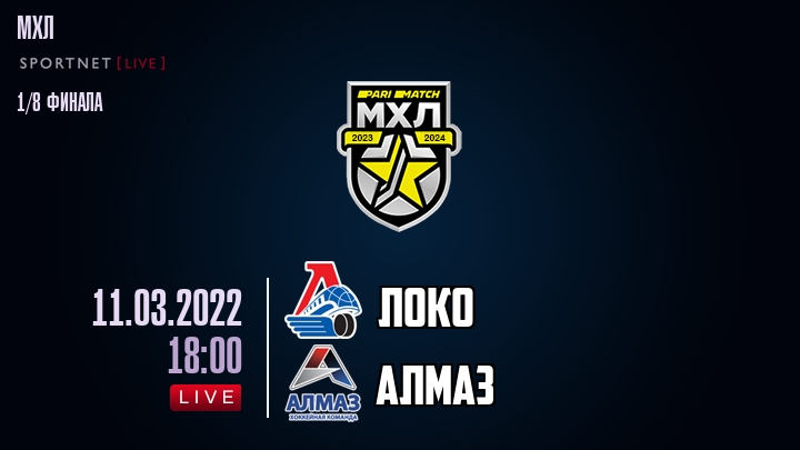11 марта 2022 года, состоялась онлайн трансляция хоккейного матча между хоккейным клубом Локо и хоккейным клубом Алмаз, проходящего в рамках чемпионата МХЛ.