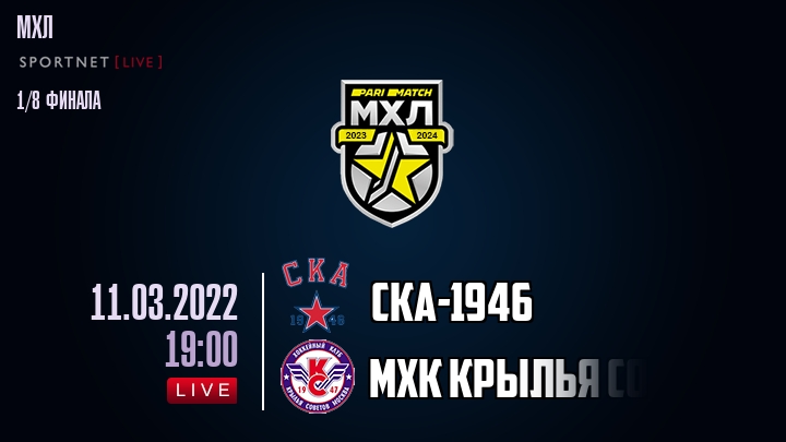 11 марта 2022 года, состоялась онлайн трансляция хоккейного матча между хоккейным клубом СКА- и хоккейным клубом МХК Крылья Советов, проходящего в рамках чемпионата МХЛ.