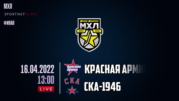 16 апреля 2022 года, состоялась онлайн трансляция хоккейного матча между хоккейным клубом Красная Армия и хоккейным клубом СКА-, проходящего в рамках чемпионата МХЛ.