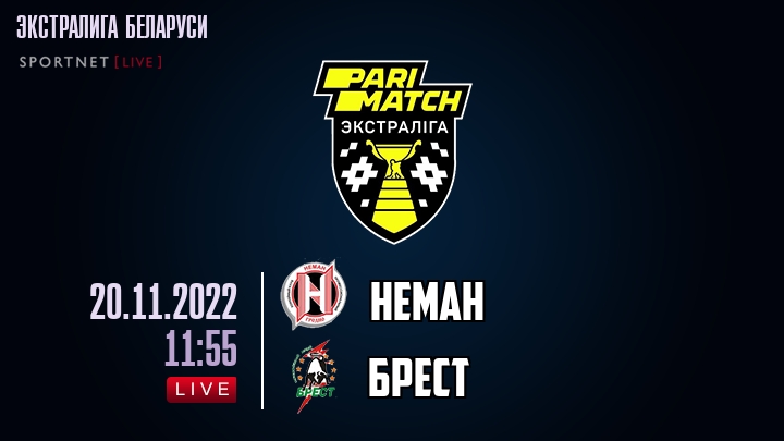20 ноября 2022 года, состоялась онлайн трансляция хоккейного матча между хоккейным клубом Неман и хоккейным клубом Брест, проходящего в рамках Экстралиги Беларуси.