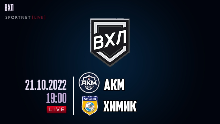 21 октября 2022 года, состоялась онлайн трансляция хоккейного матча между хоккейным клубом АКМ и хоккейным клубом Химик, проходящего в рамках чемпионата ВХЛ.