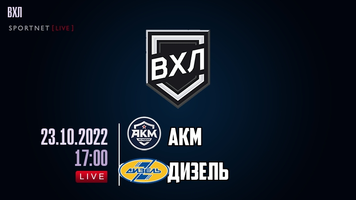 23 октября 2022 года, состоялась онлайн трансляция хоккейного матча между хоккейным клубом АКМ и хоккейным клубом Дизель, проходящего в рамках чемпионата ВХЛ.