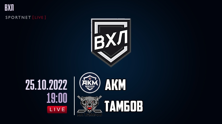 25 октября 2022 года, состоялась онлайн трансляция хоккейного матча между хоккейным клубом АКМ и хоккейным клубом Тамбов, проходящего в рамках чемпионата ВХЛ.