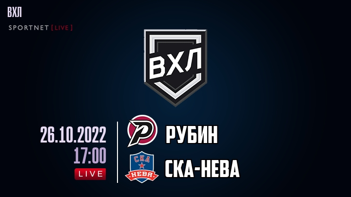 26 октября 2022 года, состоялась онлайн трансляция хоккейного матча между хоккейным клубом Рубин и хоккейным клубом СКА-Нева, проходящего в рамках чемпионата ВХЛ.