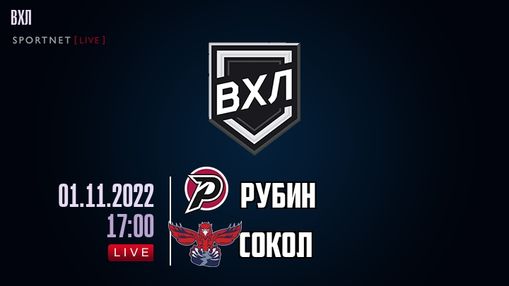 1 ноября 2022 года, состоялась онлайн трансляция хоккейного матча между хоккейным клубом Рубин и хоккейным клубом Сокол, проходящего в рамках чемпионата ВХЛ.