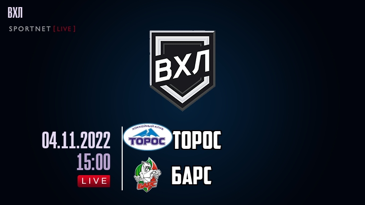 4 ноября 2022 года, состоялась онлайн трансляция хоккейного матча между хоккейным клубом Торос и хоккейным клубом Барс, проходящего в рамках чемпионата ВХЛ.