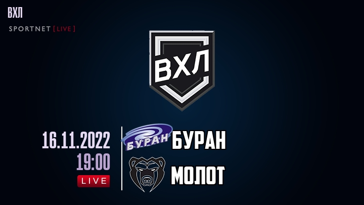 16 ноября 2022 года, состоялась онлайн трансляция хоккейного матча между хоккейным клубом Буран и хоккейным клубом Молот, проходящего в рамках чемпионата ВХЛ.