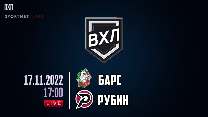 17 ноября 2022 года, состоялась онлайн трансляция хоккейного матча между хоккейным клубом Барс и хоккейным клубом Рубин, проходящего в рамках чемпионата ВХЛ.