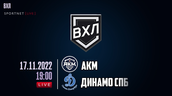 17 ноября 2022 года, состоялась онлайн трансляция хоккейного матча между хоккейным клубом АКМ и хоккейным клубом Динамо Спб, проходящего в рамках чемпионата ВХЛ.