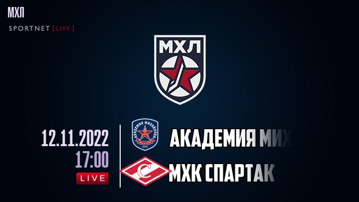 12 ноября 2022 года, состоялась онлайн трансляция хоккейного матча между хоккейным клубом Академия Михайлова и хоккейным клубом МХК Спартак, проходящего в рамках чемпионата МХЛ.