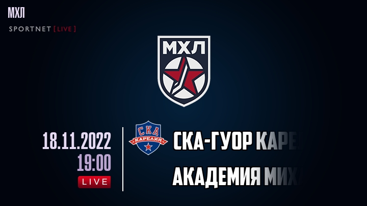 18 ноября 2022 года, состоялась онлайн трансляция хоккейного матча между хоккейным клубом СКА-ГУОР Карелия и хоккейным клубом Академия Михайлова, проходящего в рамках чемпионата МХЛ.