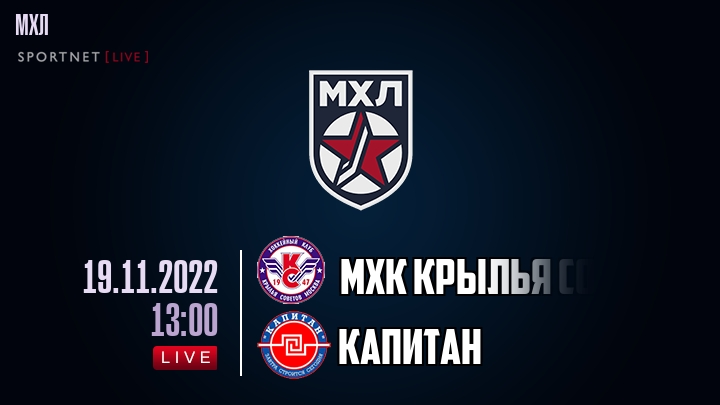 19 ноября 2022 года, состоялась онлайн трансляция хоккейного матча между хоккейным клубом МХК Крылья Советов и хоккейным клубом Капитан, проходящего в рамках чемпионата МХЛ.