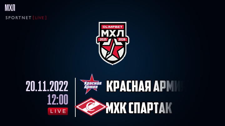 20 ноября 2022 года, состоялась онлайн трансляция хоккейного матча между хоккейным клубом Красная Армия и хоккейным клубом МХК Спартак, проходящего в рамках чемпионата МХЛ.