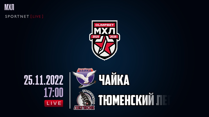 На данный момент в турнирной таблице чемпионата МХЛ Чайка занимает 8-е место, а Тюменский Легион занимает 19-е место .