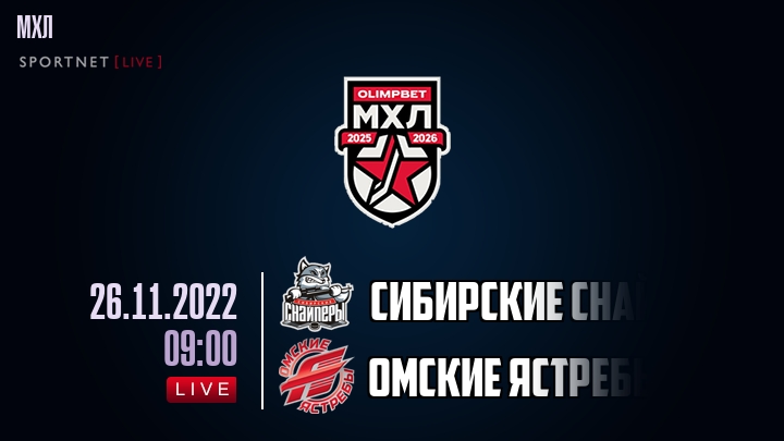 26 ноября 2022 года, состоялась онлайн трансляция хоккейного матча между хоккейным клубом Сибирские Снайперы и хоккейным клубом Омские Ястребы, проходящего в рамках Серии 1/8 финала ПЛЕЙ-ОФФ чемпионата МХЛ.