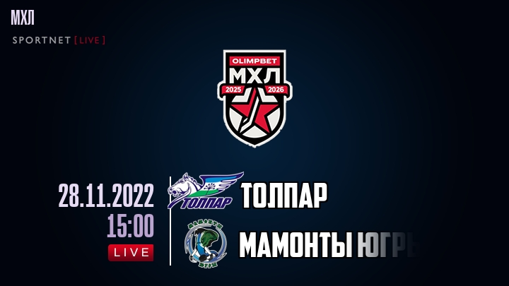 28 ноября 2022 года, состоялась онлайн трансляция хоккейного матча между хоккейным клубом Толпар и хоккейным клубом Мамонты Югры, проходящего в рамках чемпионата МХЛ.