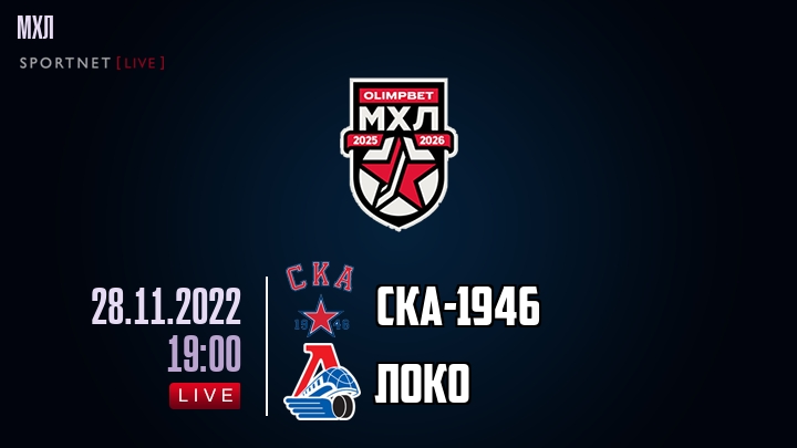 28 ноября 2022 года, состоялась онлайн трансляция хоккейного матча между хоккейным клубом СКА- и хоккейным клубом Локо, проходящего в рамках чемпионата МХЛ.