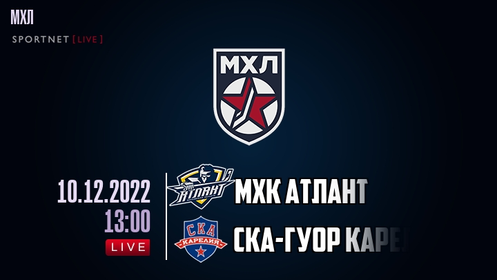 10 декабря 2022 года, состоялась онлайн трансляция хоккейного матча между хоккейным клубом МХК Атлант и хоккейным клубом СКА-ГУОР Карелия, проходящего в рамках чемпионата МХЛ.