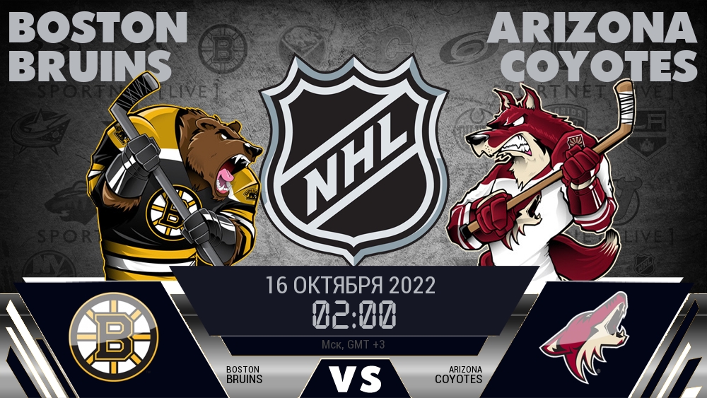 16 октября 2022 года, состоялась онлайн трансляция хоккейного матча между хоккейным клубом Бостон Брюинз и хоккейным клубом Аризона Койотс, проходящего в рамках чемпионата NHL.