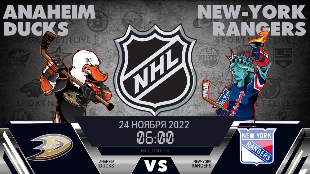 24 ноября 2022 года, состоялась онлайн трансляция хоккейного матча между хоккейным клубом Анахайм Дакс и хоккейным клубом Нью-Йорк Рейнджерс, проходящего в рамках чемпионата NHL.