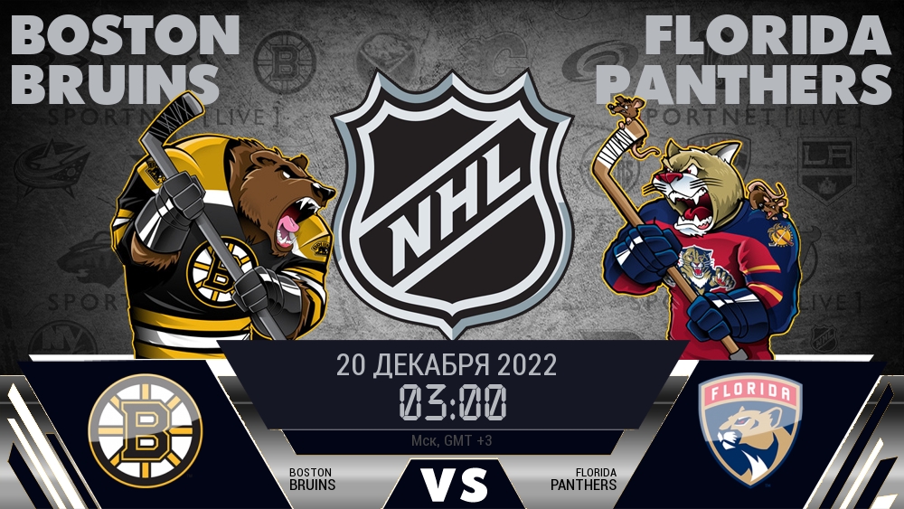 20 декабря 2022 года, состоялась онлайн трансляция хоккейного матча между хоккейным клубом Бостон Брюинз и хоккейным клубом Флорида Пантерз, проходящего в рамках чемпионата NHL.