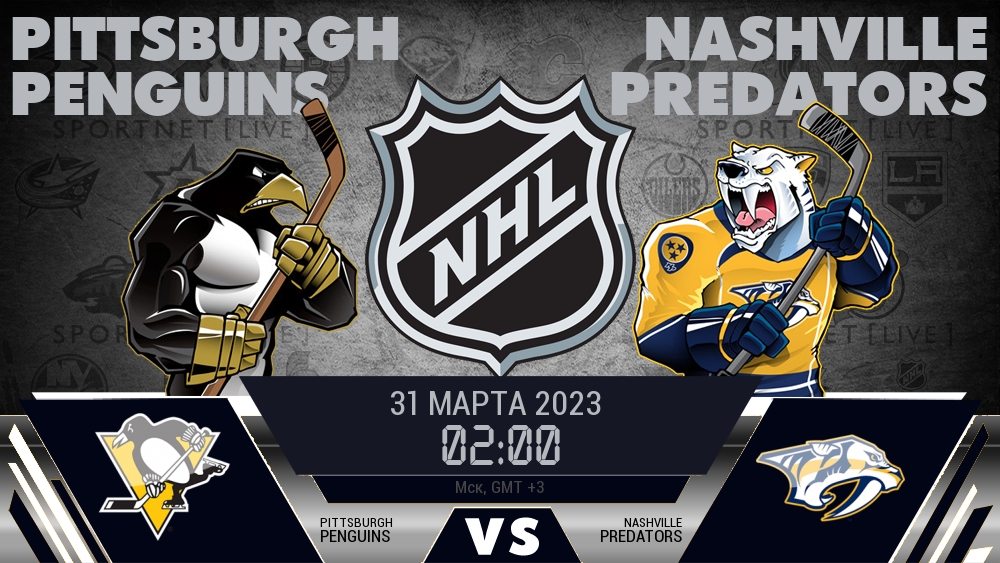 31 марта 2023 года, состоялась онлайн трансляция хоккейного матча между хоккейным клубом Питтсбург Пингвинз и хоккейным клубом Нэшвилл Предаторз, проходящего в рамках чемпионата NHL.
