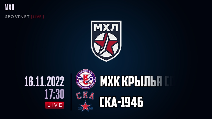 16 ноября 2022 года, состоялась онлайн трансляция хоккейного матча между хоккейным клубом МХК Крылья Советов и хоккейным клубом СКА-, проходящего в рамках чемпионата МХЛ.