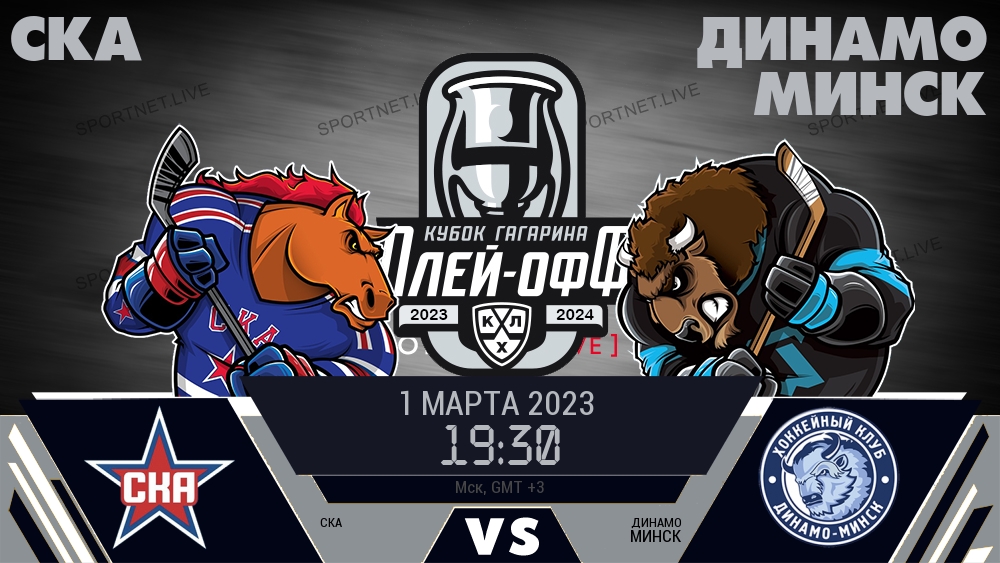 1 марта 2023 года, состоялась онлайн трансляция хоккейного матча между хоккейным клубом СКА и хоккейным клубом Динамо Минск, проходящего в рамках чемпионата КХЛ.